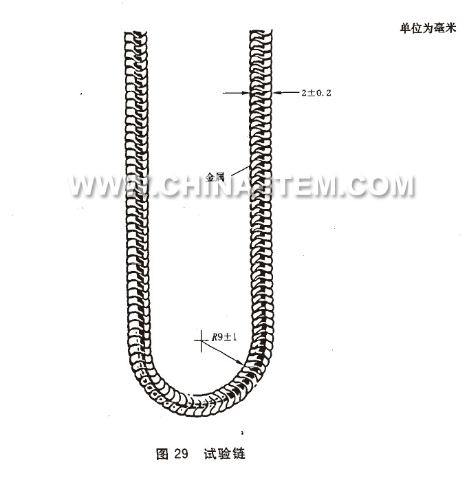 具有符合圖29規(guī)定的鏈環(huán),未涂覆且長度足夠的金屬鏈由63%銅37%鋅制成。當以200g/m的負載拉伸時,該鏈的阻值為2.5Ω/m±20%。...